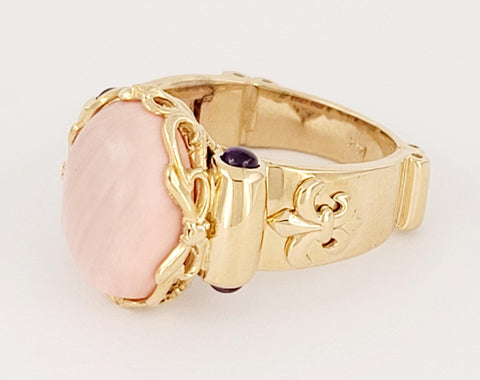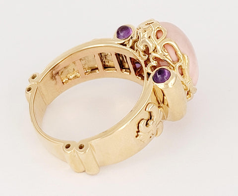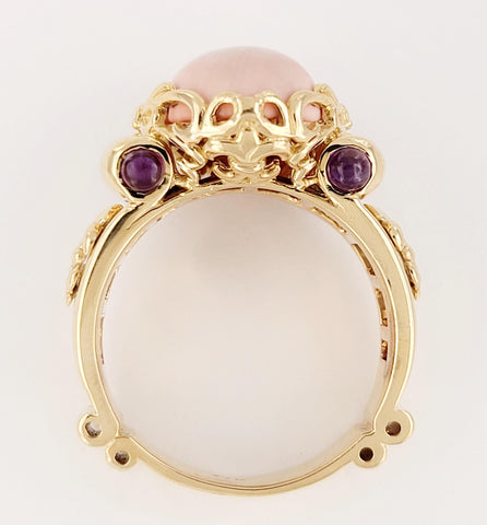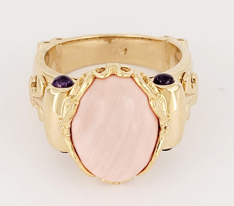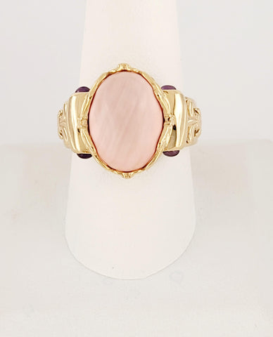 Vintage Imitation Coral and Amethyst Ring in 14K Yellow Gold.