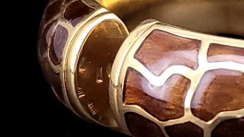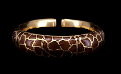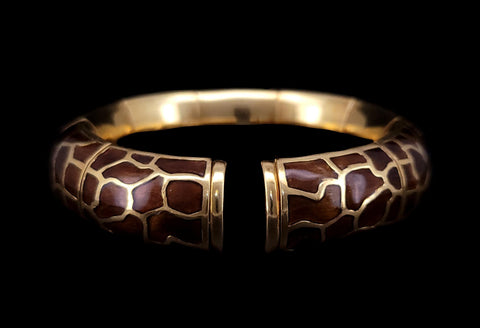 Roberto Legnazzi Italian 18K Yellow Gold Giraffe Enamel Flexible Cuff Bracelet