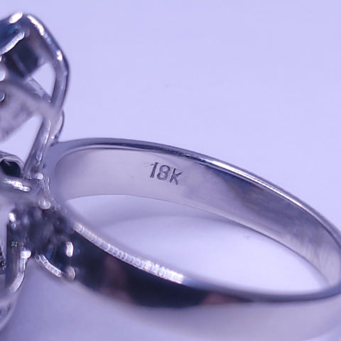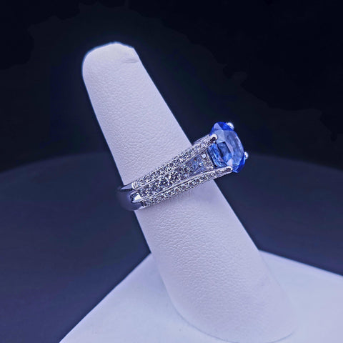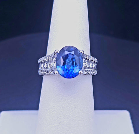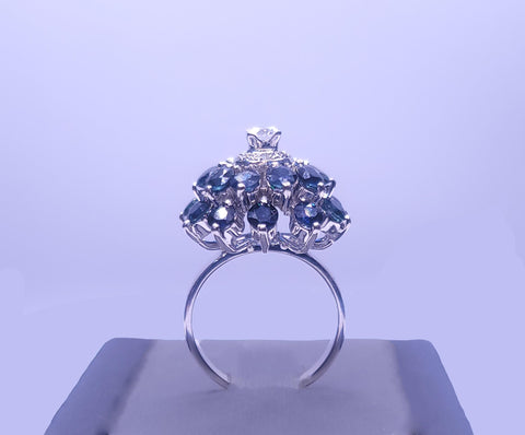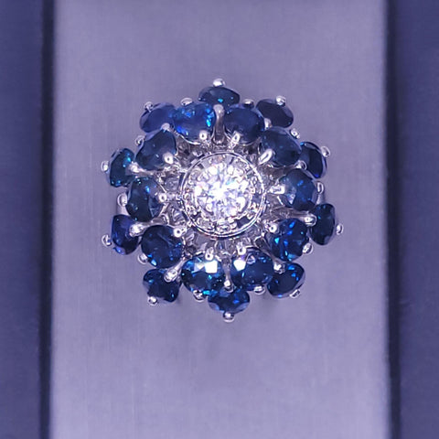 Blue Sapphire & Diamond Statement Ring in 18K White Gold