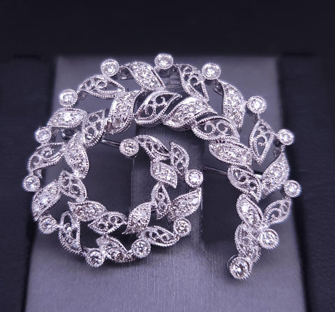 18K White Gold Filigree Wreath Brooch