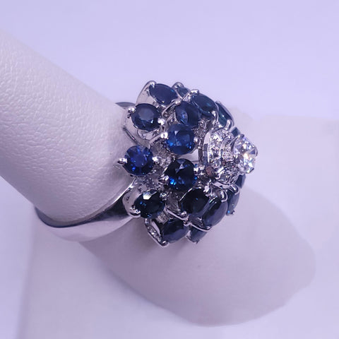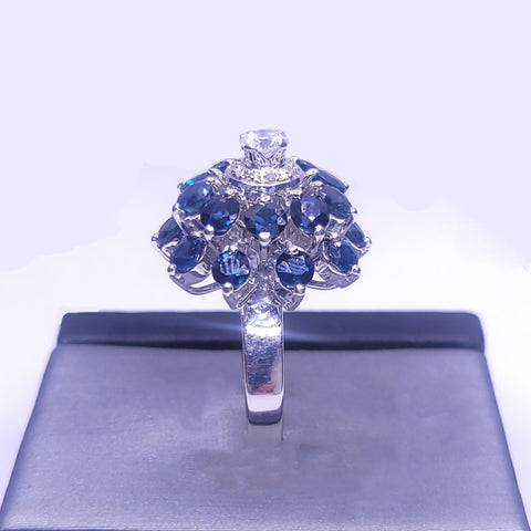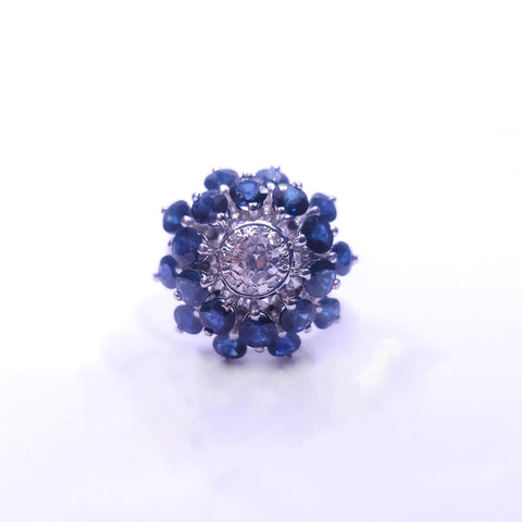 Art Deco Sapphire & Diamond Cluster Ring in 18K White Gold