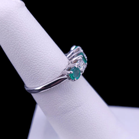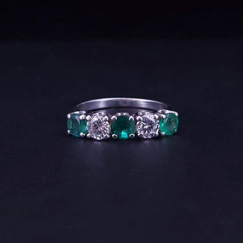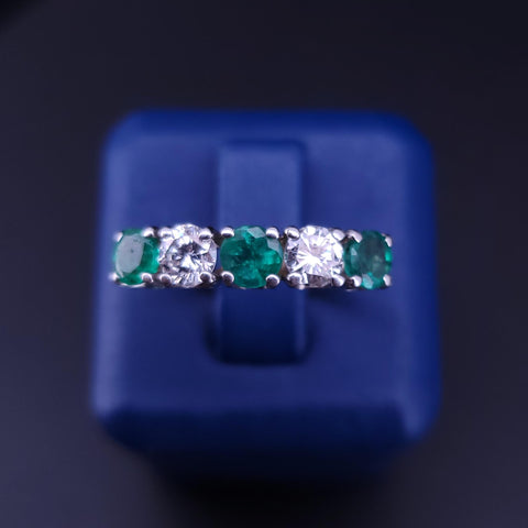 Antique Emerald and Diamond Band Ring, Five-Stone Design
