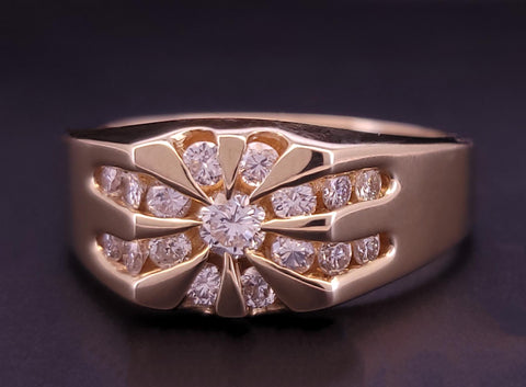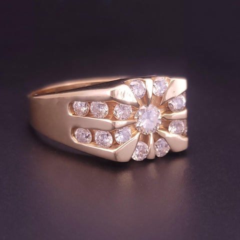 14K Yellow Gold Cluster Diamond Ring 7,75