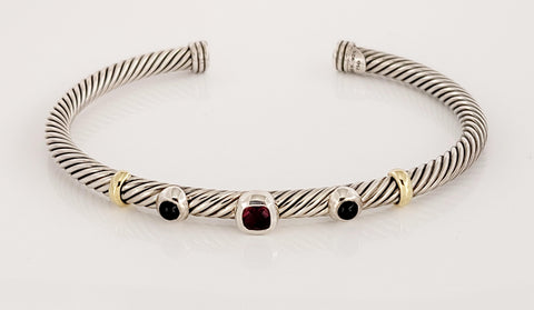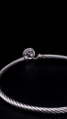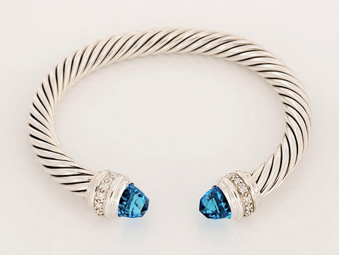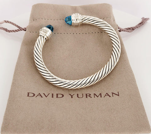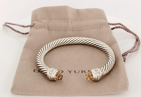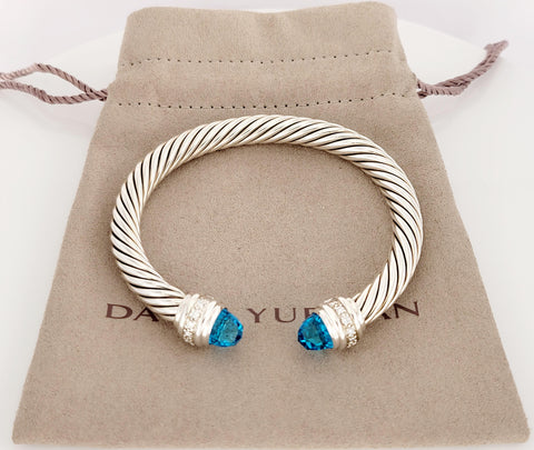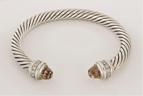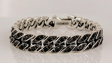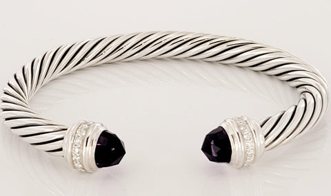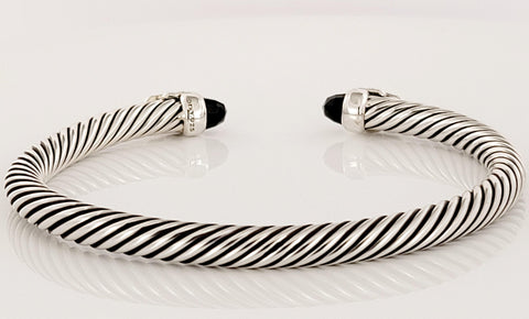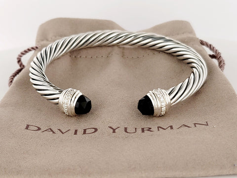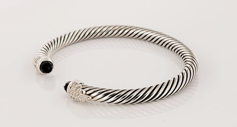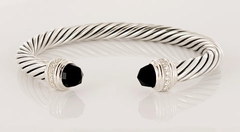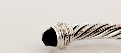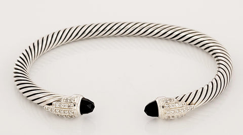 David Yurman Black Onyx Empire Cable Cuff Bracelet With Pave Diamonds