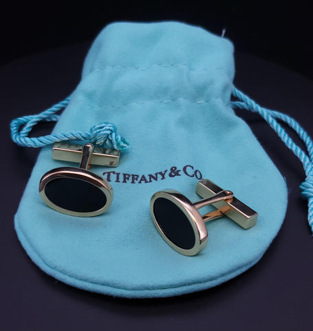 Vintage Tiffany & Co 14K Yellow Gold& Black Onyx Cufflinks