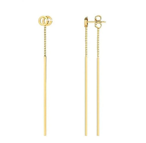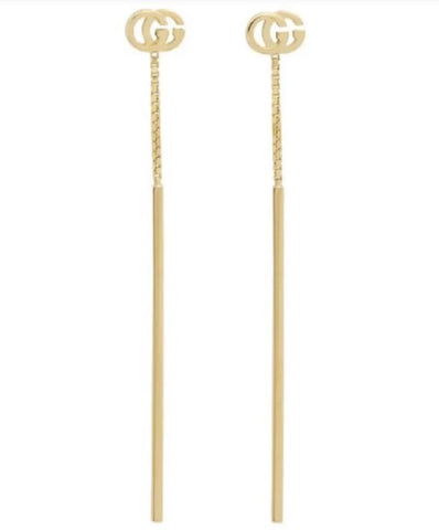Gucci 18k Gold GG Logo Running Long Pendant Earrings Double Bar