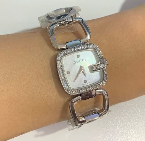 Gucci Ladies Watch MOP Dial Diamond Bezel Watch YA125404