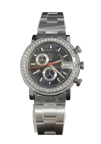 Gucci G Chrono 101 M Stainless Steel Aftermarket Diamond Bezel Watch YA101309