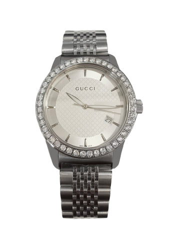 Gucci Diamond Watch Silver Dial G Timeless 38mm YA126401