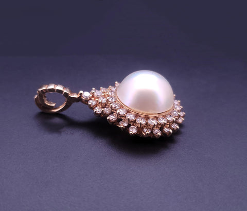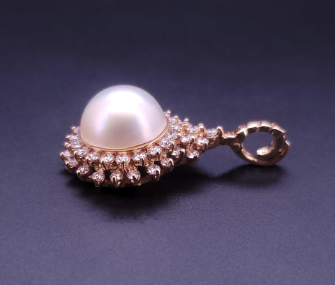Pearl Pendant with Diamond in 14K Yellow Gold