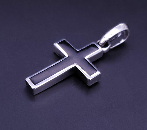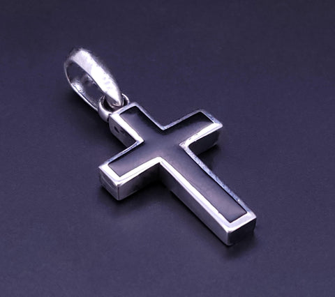 Chevron Cross Pendant Sterling Silver with Black Diamonds