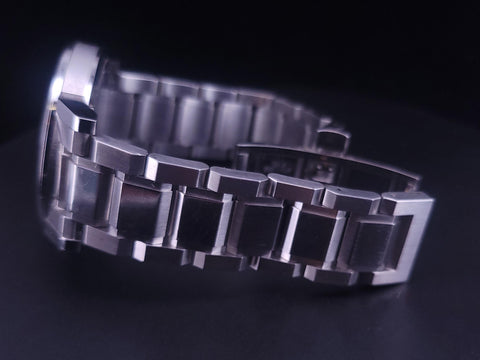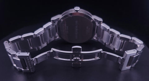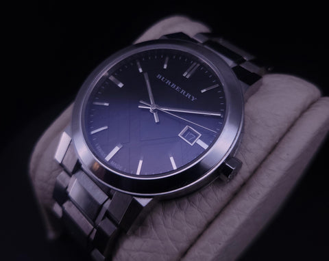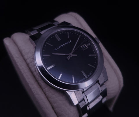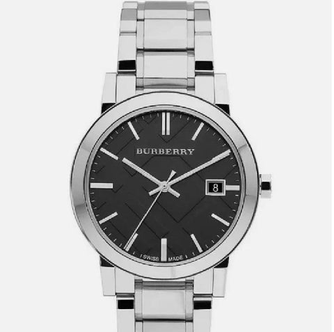 Burberry Gents Silver Tone Steel Black Face