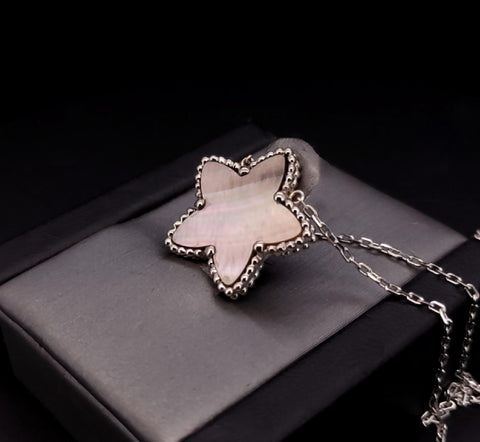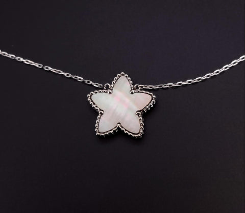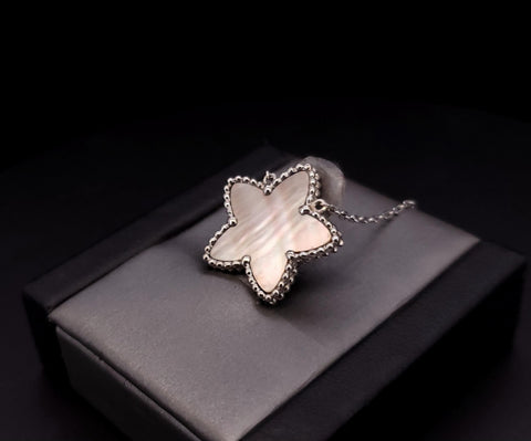 Van Cleef & Arpels Lucky Star Grey Mother Of Pearl 18K White Gold Necklace
