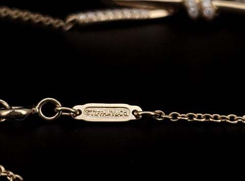 Tiffany & Co PLT Fleur de Lis Key Necklace Diamonds Pendant Charm Chain 16''