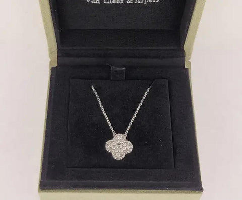 Vintage Alhambra Pendant Necklace 18KW Gold with diamonds