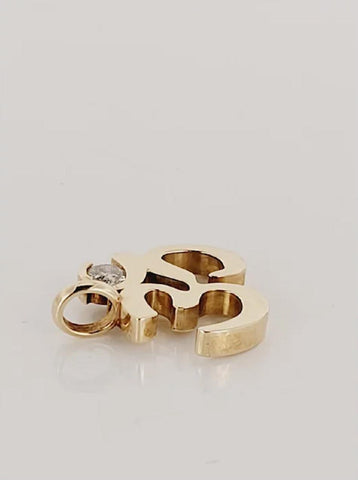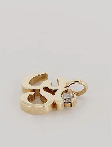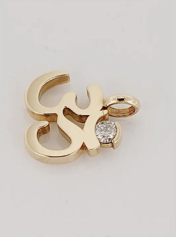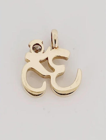 Vintage Tibetan "OM" Hindu Meditation Charm Yoga Pendant with Diamond Set in 14K