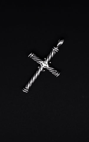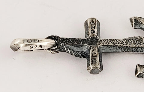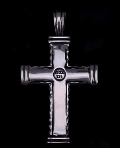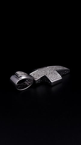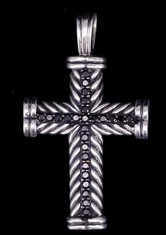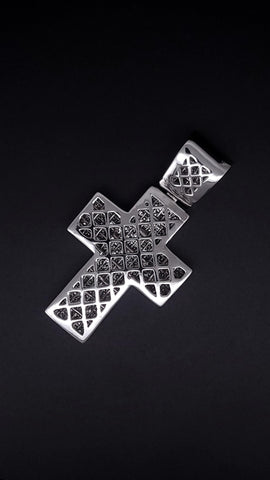 Chevron Cross Pendant Sterling Silver with Black Diamonds