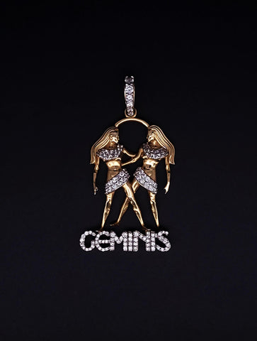 Custom Made 'Geminis' 14k Yellow Gold Diamond Pendant