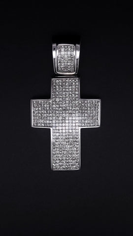 Custom Made Diamond Cross Pendant in 14k White Gold