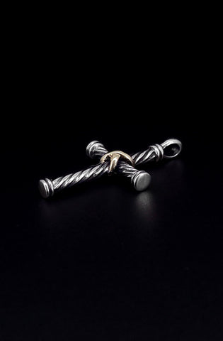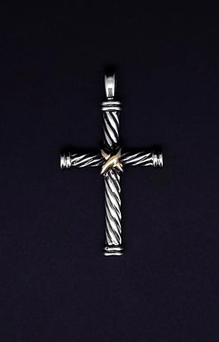 David Yurman Cable Cross Pendant Sterling Silver with 18K Yellow Gold