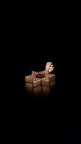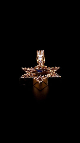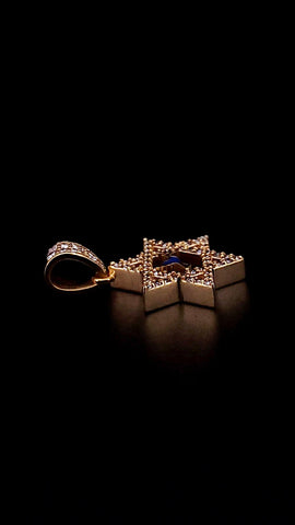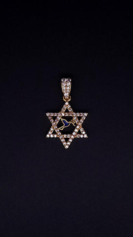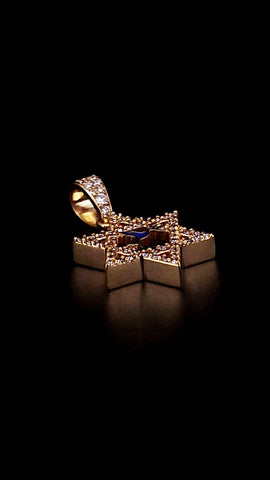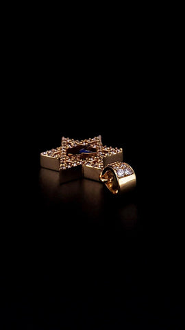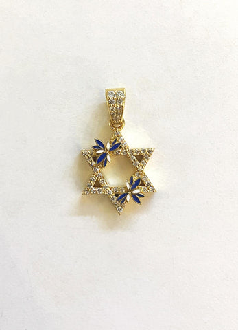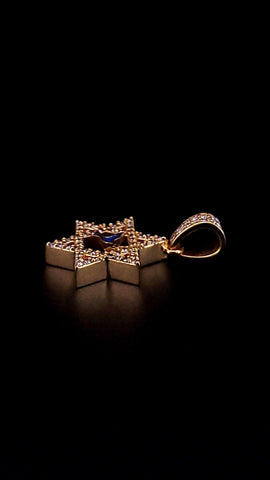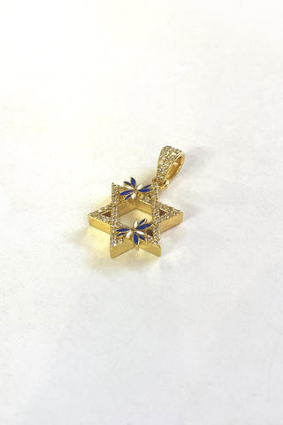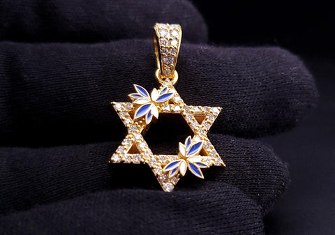 Custom Made Star of David 14k Yellow Gold Blue Enamel with Diamonds Pendant