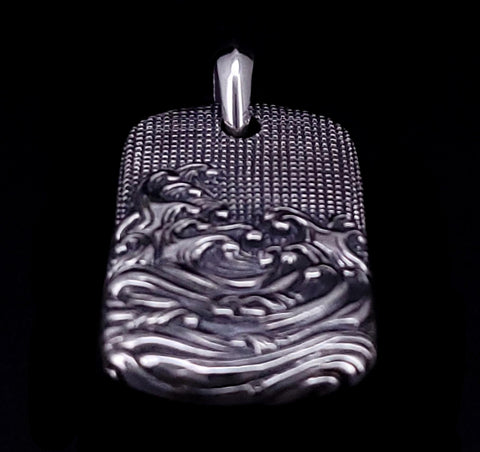 Chevron Tag Sterling Silver with Black Onyx, 27.4mm