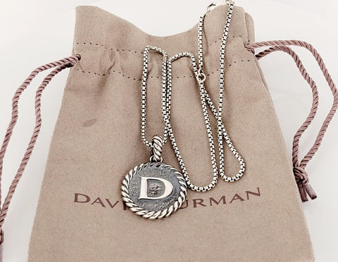 DAVID YURMAN Cable Collectibles D Initial Charm Pendant Enhancer Sterling Silver