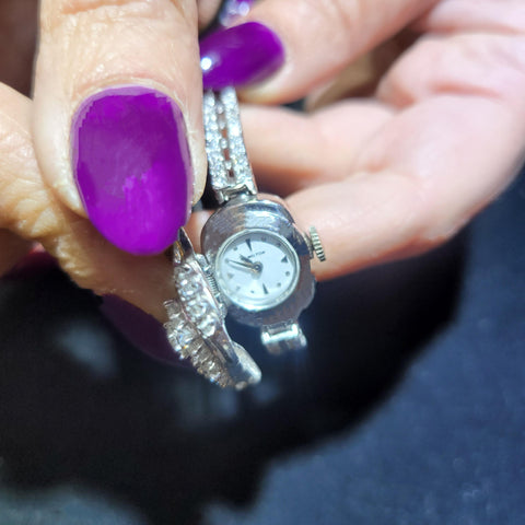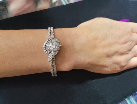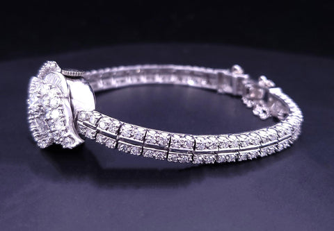 Ladies Vintage Watch Bracelet in Platinum with Diamonds