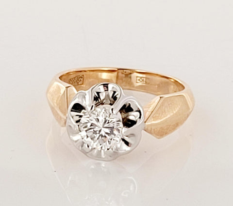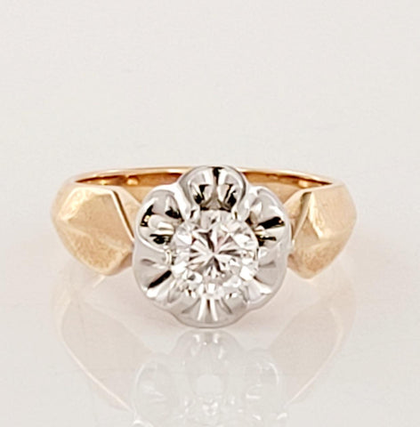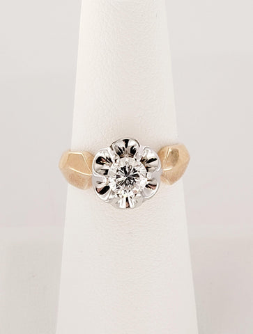 Vintage European Style Solitaire 1 ctDiamond Ring in 14K Rose Gold and Palladium