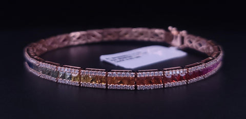 Diamond Multi Sapphire Bracelet 14K Yellow Gold