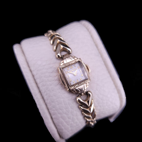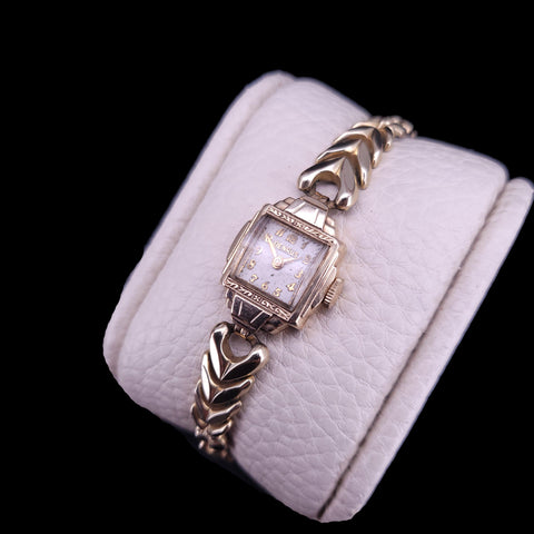 Benrus Vintage Art Deco 14K Yellow Gold Ladies Bracelet Watch