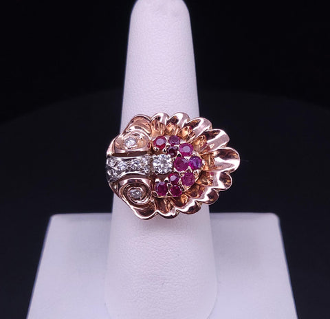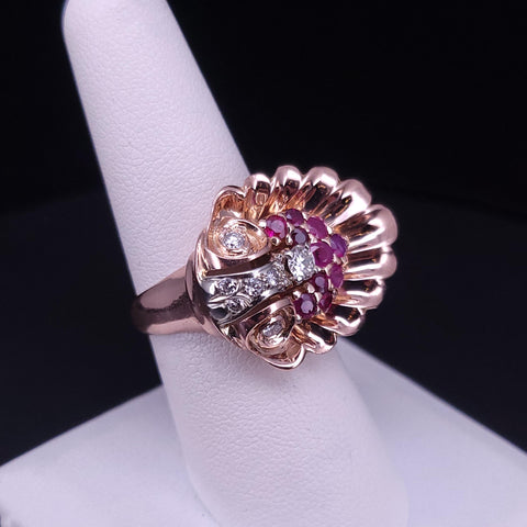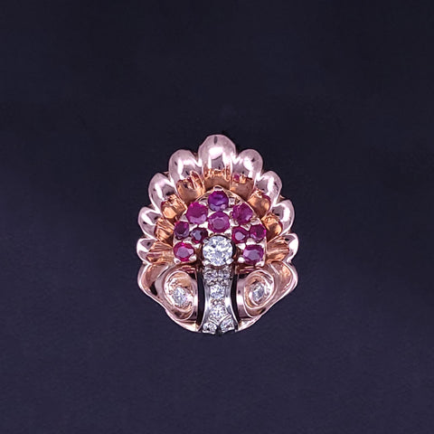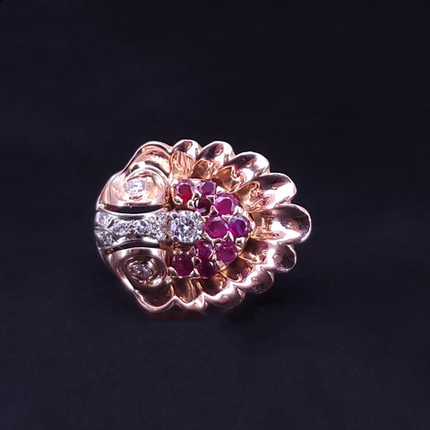 Antique Ruby Diamond Peacock Ring in 14K Rose Gold