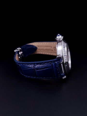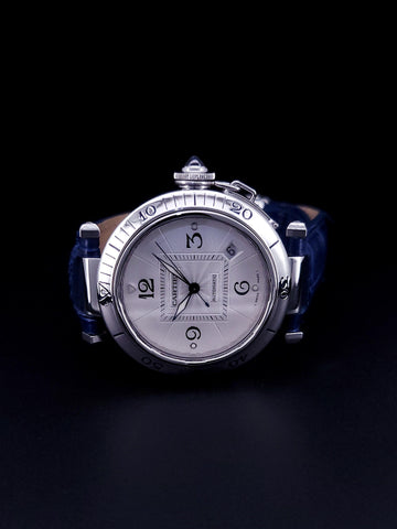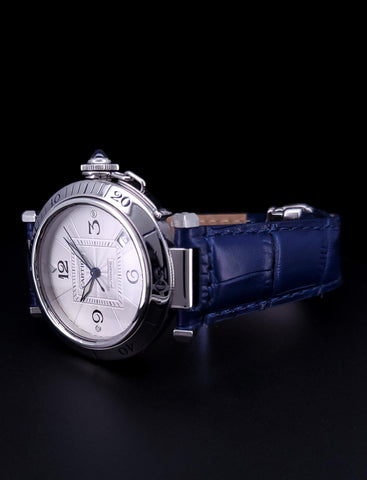 Cartier Pasha Steel Silver Arabic Guilloche Dial Automatic Men's Watch 2379