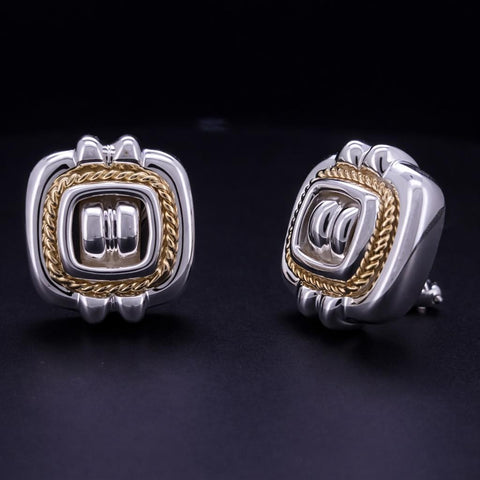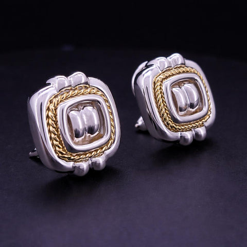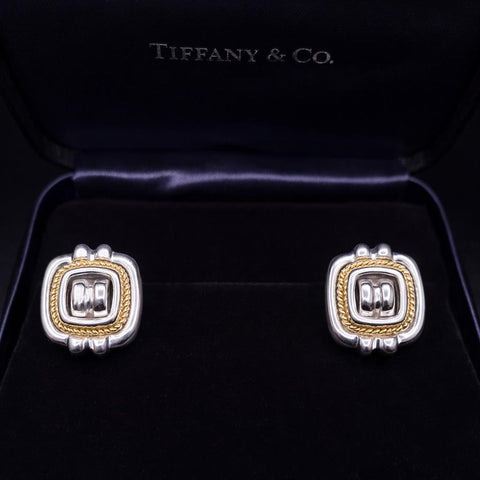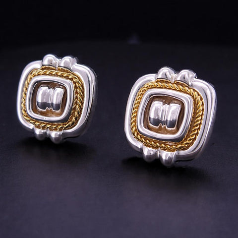 Tiffany & Co VINTAGE RARE Silver 18K Gold Rope Square Earrings