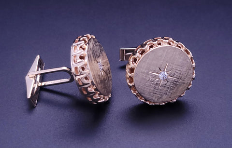 Cufflinks 14K Yellow Gold with Black Onyx and Diamond
