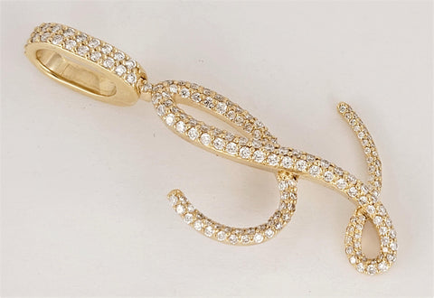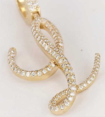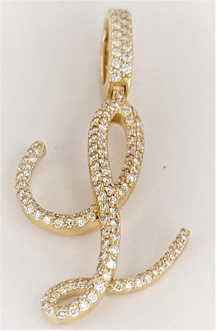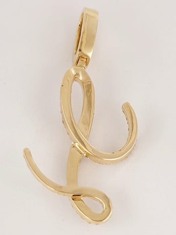 Hand Made "L" Letter Pendant in 14K Yellow Gold with Diamonds