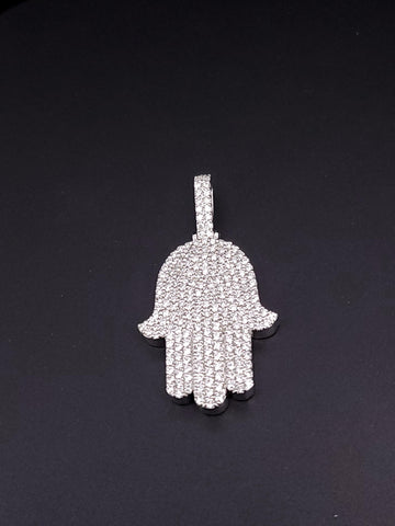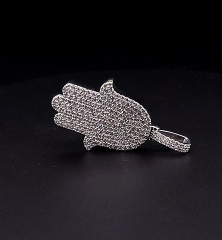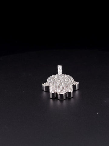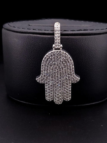 Hamsa hand pendant 14K White Gold 3.00 ct diamonds