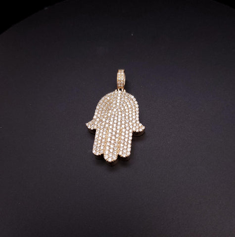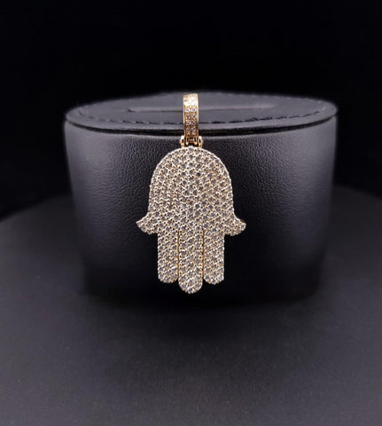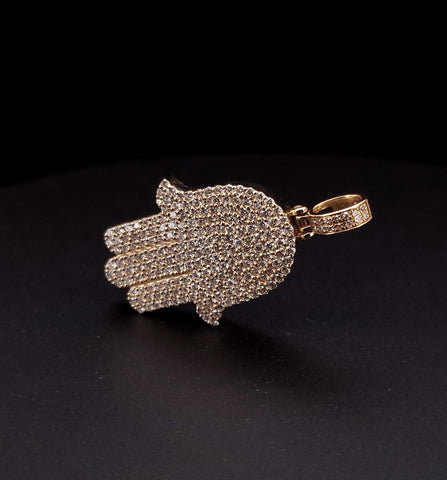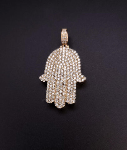 Hamsa hand pendant 14K Yellow Gold 2.5ct diamonds