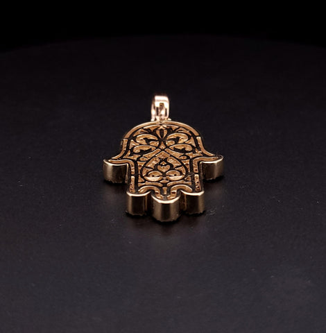 Custome Made Hamza Pendant in 14K Yellow Gold with Diamonds