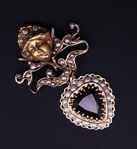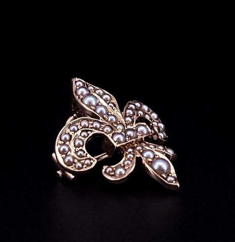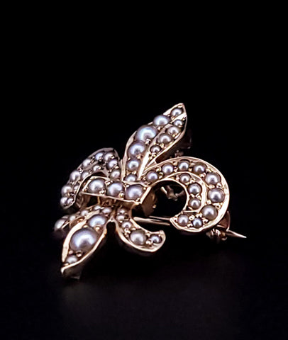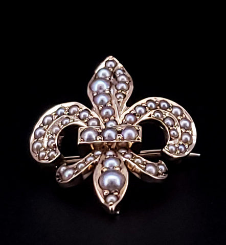 Fleur De Lis 14k Gold Seed Pearl Brooch