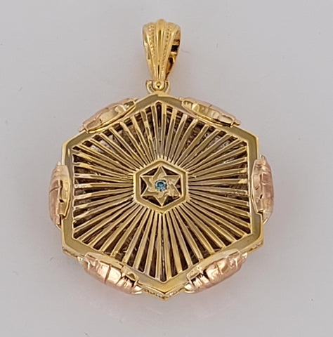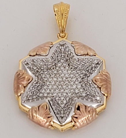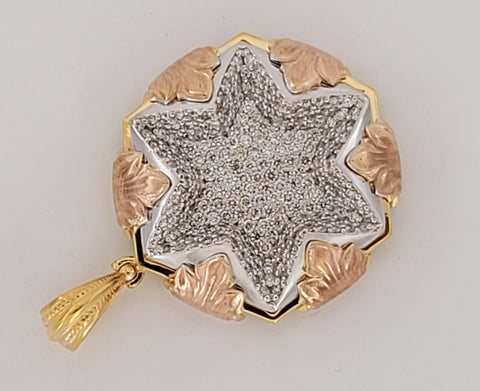 Custom Made Star of David 14k Gold Diamond and Pink Enamel Pendant