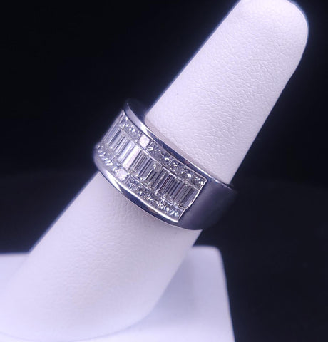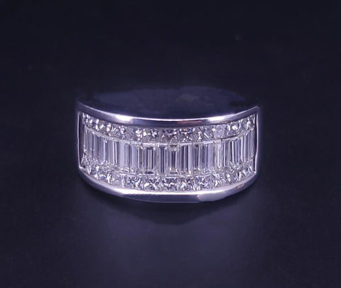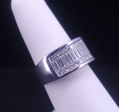 Vintage-Style Baguette With Invisible Princess Cut Seting Band in 14K W/G S 6.5