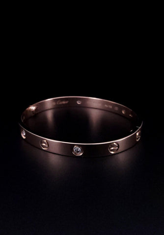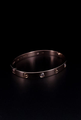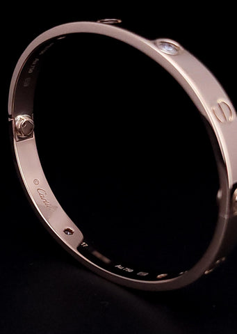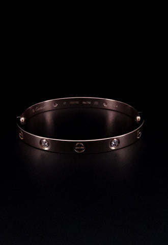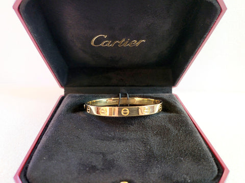 18k Yellow Gold Cartier Love Diamond Open Cuff Bracelet Size 18