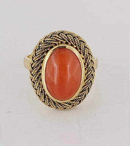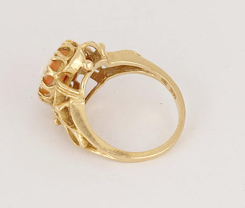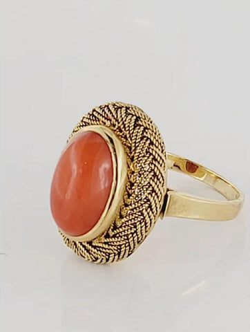 Antique Honeycomb Natural Coral Ring Set in 18K Yellow Gold