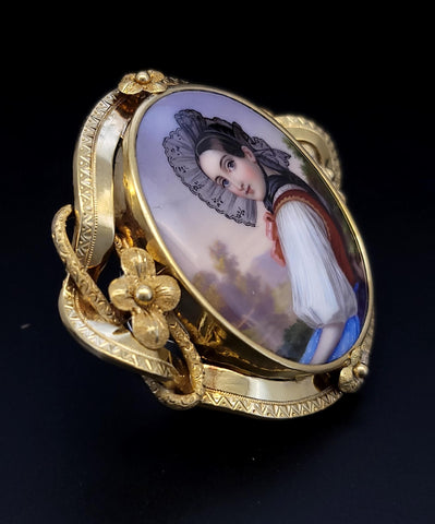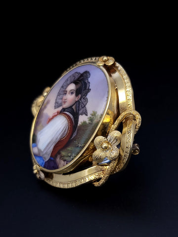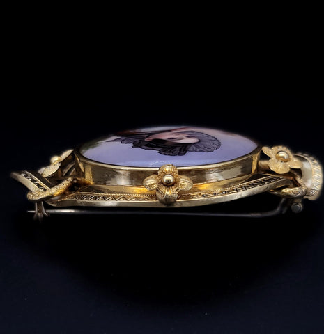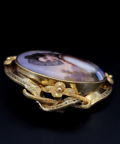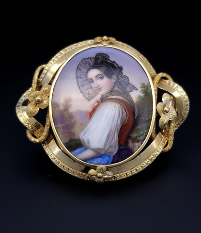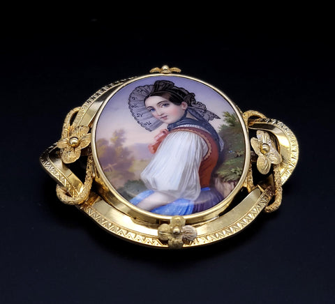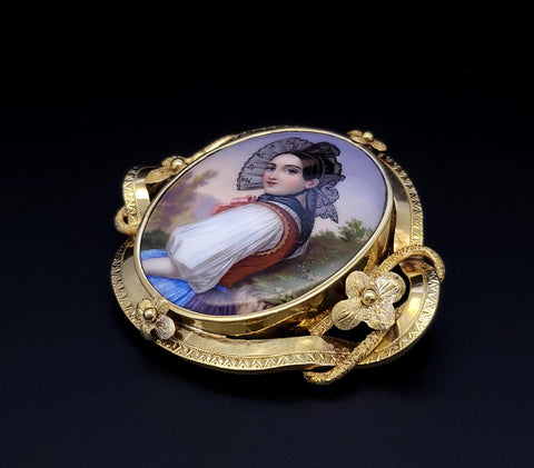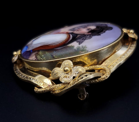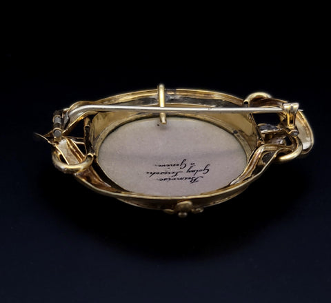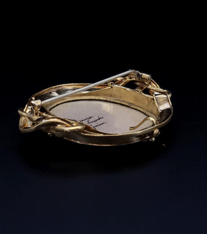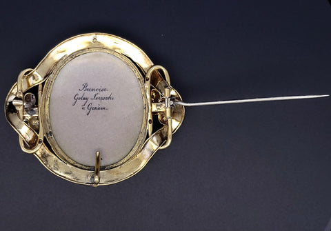 Antique 18K Gold Bernoise A. Golay Leresche brooch French enamel Oval