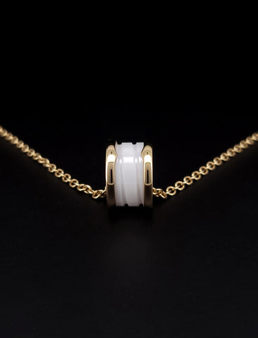 Bvlgari B.Zero1 White Ceramic 18k Rose Gold Pendant Necklace