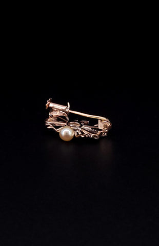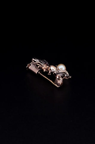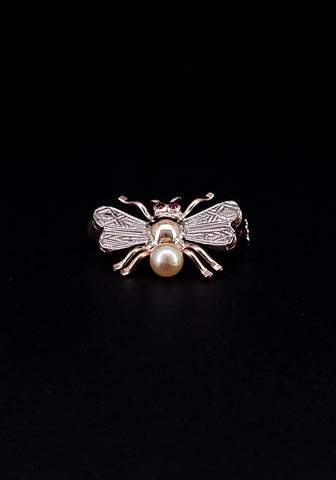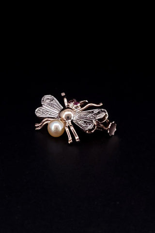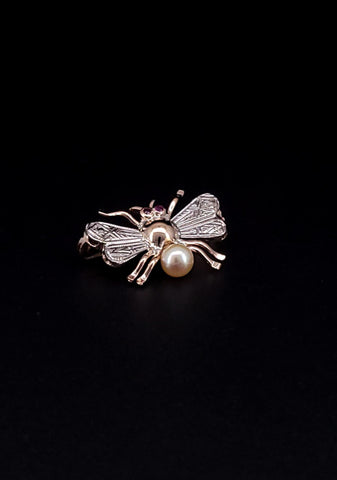 Bee Insect 14k Gold Brooch with Ruby and Pearl