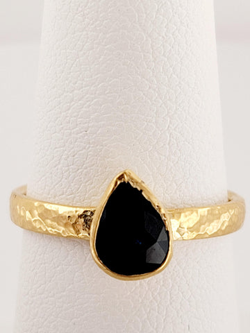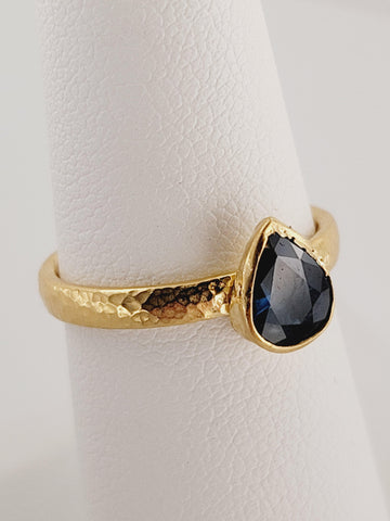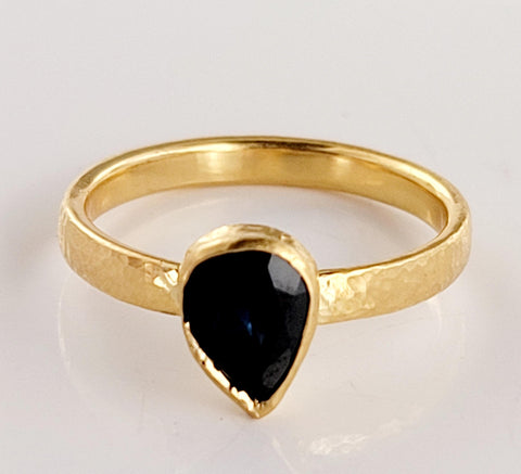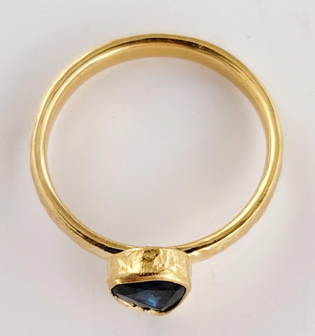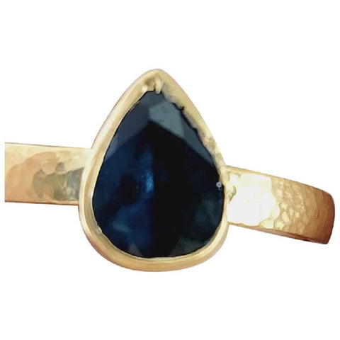 Blue Sapphire Pear Cut Ring Designed by Gurhan in 24K Yellow Gold