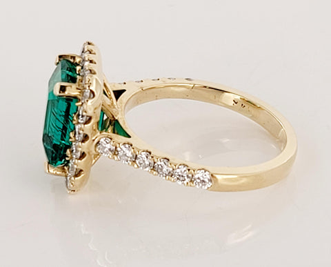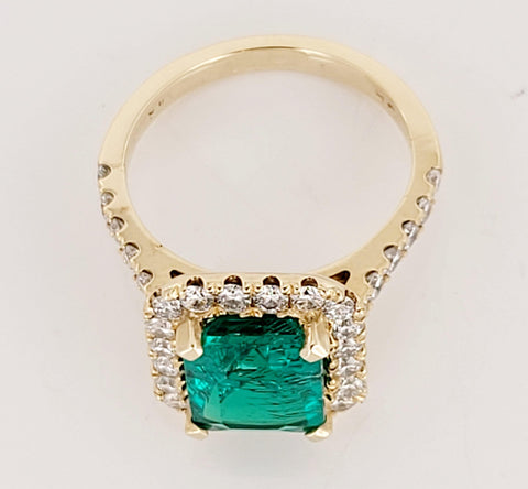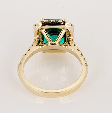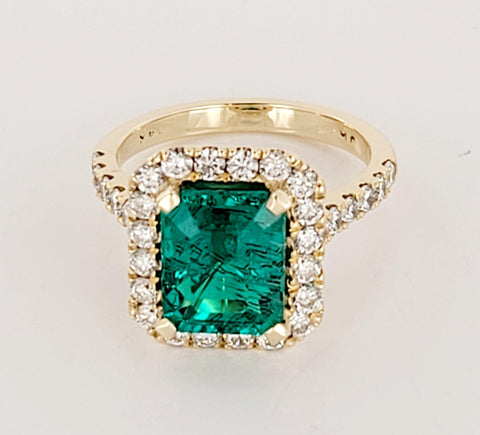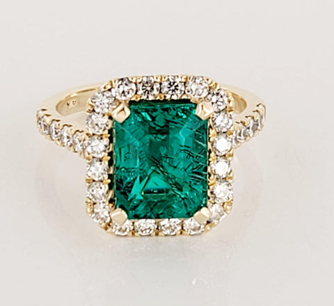 Artisan Emerald Cut Emerald Ring with Diamonds