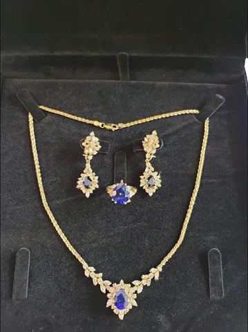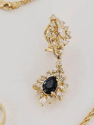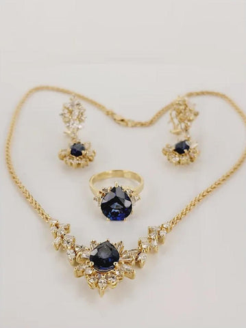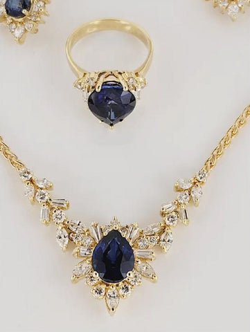 Blue Sapphire and Diamond Set. Made in Italy 18K Yellow Gold